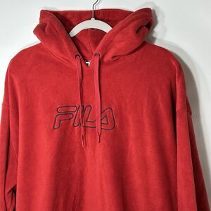 Fila Hoodie Men's Size XXL Red Graphic Logo Polar Fleece Drawstring Pullover