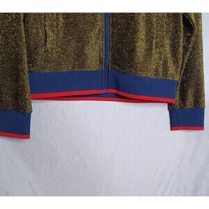 Fila Jacket Womens Small Gold Glittery Metallic Blue Red Bomber Full Zip Retro Style