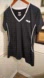 Sleek black tee with white accents. V-neck design. Ideal for casual wear.