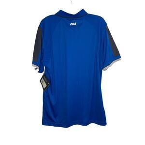 Fila Mens Shirt Polo Size M Blue Short Sleeve Pullover Collared Unlined. NWT. Collared. Unlined. Button closure. Polyester.