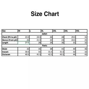 @nbjtrash unfortunately no! But here are the measurements for XL it might fit as these are kinda slim fit. Armpit to armpit 26, sleeve length from armpit 22, length of the jacket from the back 29, waist 38, inseam 31.5, outseam 42.5