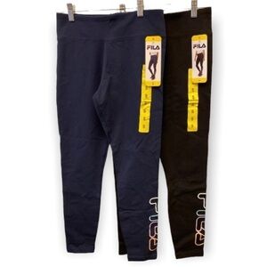 Fila NWT 2 Pairs Leggings, Ankle Length, High Rise #1467271, 1 Pair Black & 1 Pair Navy, Size Small, Logo. New With Tags. 93% Cotton. 7% Spandex.