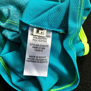NWT. Performance Tank Top for Girls Size 6/6X. Pull on, racerback, breathable material, as per tag color is known as "atomic blue print heather" with "highlighter yellow" seam and thread accent. Pcit are part of description.