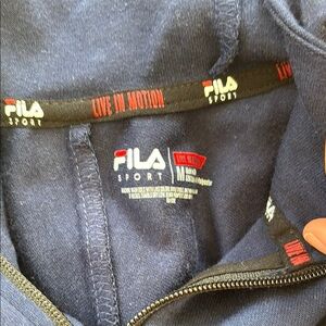 Stylish Fila hoodie. Features a full zip closure. Comfortable and casual.