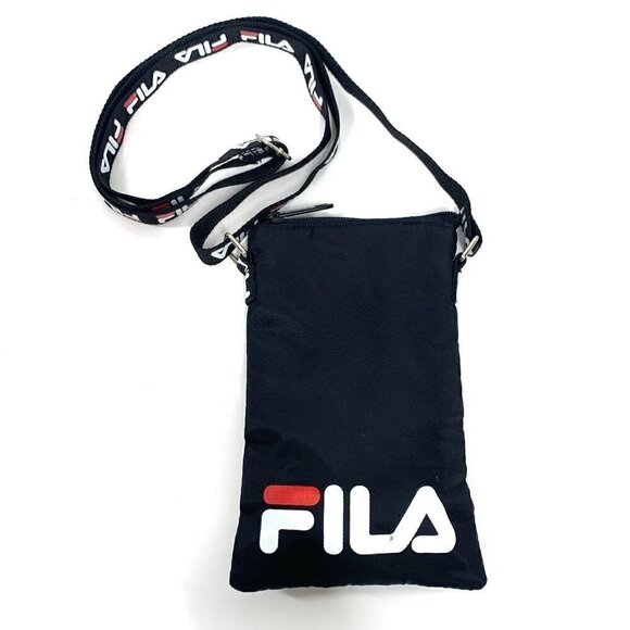 Fila Nylon Crossbody Zippered Pouch Black, White, Red 4.5"W x 7.5"H
