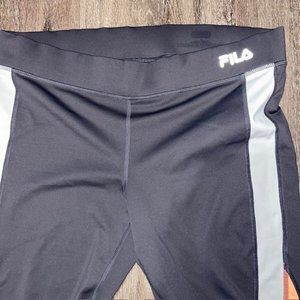 Fila Performance Pants Womens Medium Long Black White Orange Yoga Workout EUC
