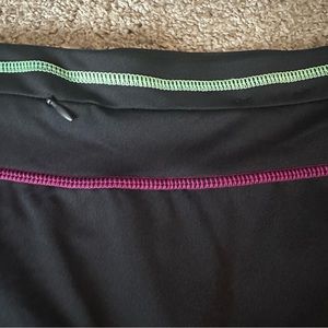 excellent condition | zipper in the front | 90% polyester, 10% spandex | pink and light green stitching