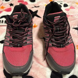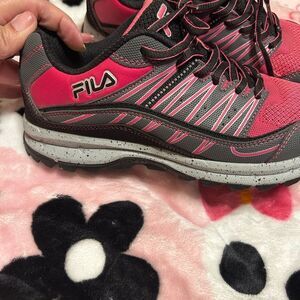 Experience superior comfort and performance with Fila's athletic shoes, featuring a breathable pink and gray mesh upper and a rugged sole for all-terrain adventures. The cushioned midsole ensures optimal support, making them perfect for your active lifestyle.