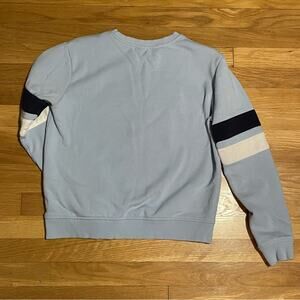 Preppy classic sportswear sweatshirt with varsity style stripes on upper arms.