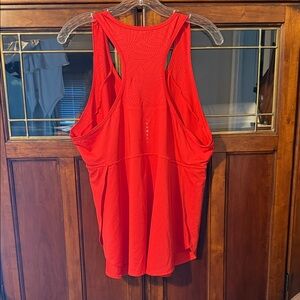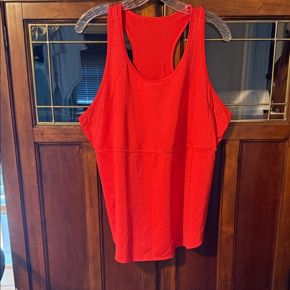 Lightweight athletic tank with racerback design. Perforated back panel improves airflow. Smooth, stretchy fabric allows full range of motion. Simple style for workouts or casual wear.