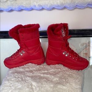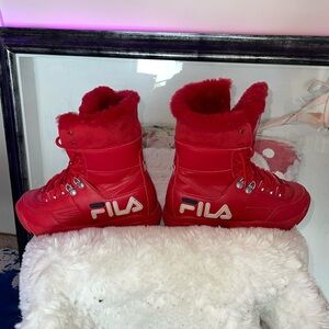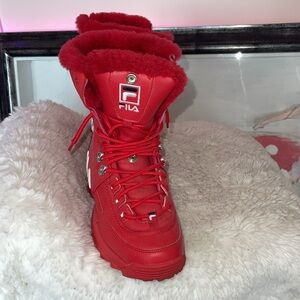 Fila Red Women's Winter Boots with sheep skin edging part leather part manmade