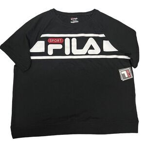 Fila Short Sleeve Workout Gear Black Sweatshirt Logo Style Top FILA Plus 1X