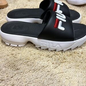 Fila Slides with thick white sole, worn about once