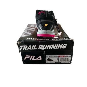 Stylish wide width Fila sneakers. Black with pink details. Perfect for active play.