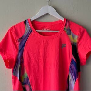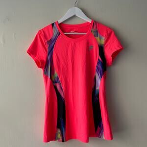 Fila Sport Bright Pink?Orangy Short Sleeve Crew Neck Active T-Shirt w/ Abstract Print - Size M