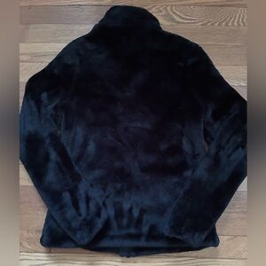Extremely soft jacket with a faux fur look and feel. In great condition. See pictures for specific measurements.