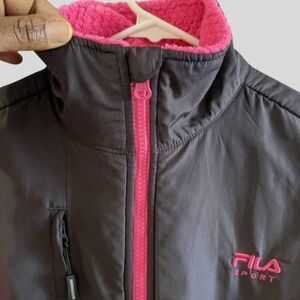 Fila Sport Jacket Women's Size Small Pink Gray Fleece Zip Outdoor Fall Layer Faux Fur