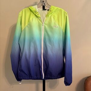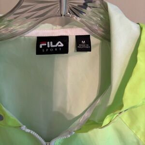 Bright lime green Fila Sport jacket. Sleek design with zip closure. Perfect for active wear.