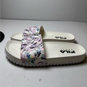 Fila Sport Slip On Sandals in excellent/like new condition. Measurements of sole is located in the pictures. I was unable to locate the shoe size on the shoes.