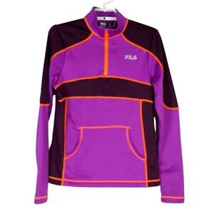 Fila Sport Women's 1/4 Zip Pullover Fleece Jacket Pink Purple orange trim sz M