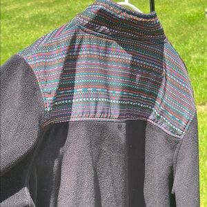 EUC Like new, soft velvet-like black jacket by Fila Sport. Colorful patterned upper with embroidered Fila Sport logo. Two side pockets. Zips up front.