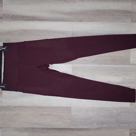 🛍Fila Sport Womens Medium Burgundy Leggings Ribbed Stretch Pockets Activewear
