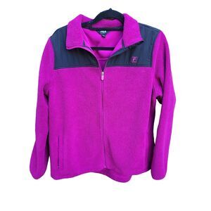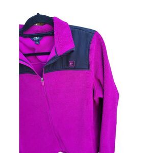 Fila Sport Zip Up Fleece Sweatshirt XL Womens Purple Black Long Sleeve Heavy War