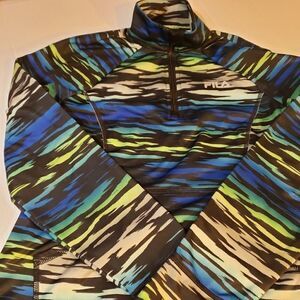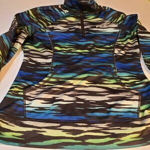 Fila blue, green and black zebra stripe pullover jacket with kangaroo pocket