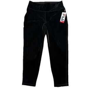 Fila Strike A Pose 3/4 Tight Womens 1X Black Glossy Pull On Ankle Length Edgy