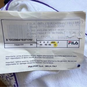 Fila Sweater Vest Vintage Athletic V-Neck Cream Purple Print NWT Size 12
