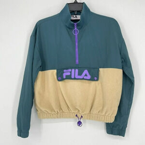 Fila Jacket Women's XS Retro Athletic Drawstring Colorblock Green Purple