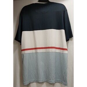 With its classic colorblock stripes in navy, white, and red, this mens XL shirt blends sporty retro style with modern comfort.