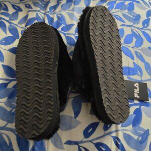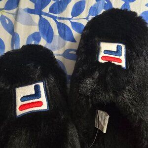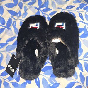 Fila Unisex Black Fuzzy Slippers Size Small