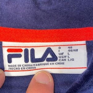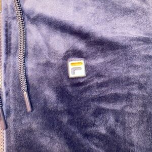 Fila Velour Navy Blue Track Suit Jacket Hoodie Mens Size Large Retro Tape Logo