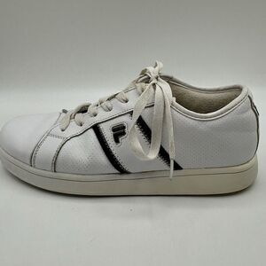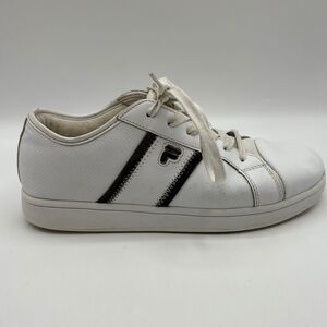 Fila Venerate Men’s White Leather Sneakers Size 8 Black Stripe Classic Shoes