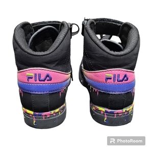 Fila vulc black, pink and purple paint Drip kids sneakers (Light normal wear) Size 1