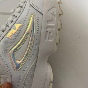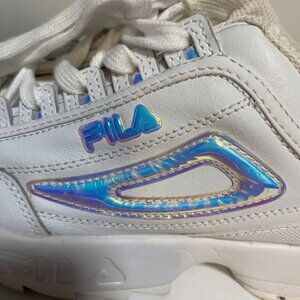 Fila White Iridescent Holographic Disruptor 2 Premium Women’s Sneakers Size 8.5