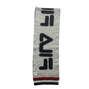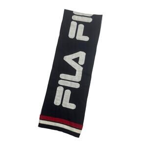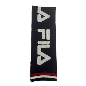 Men's or women's winter scarf. Fila logo in white letters against navy blue background with red and white stripes at bottom. Basic cold weather accessory for fall winter. Excellent preowned condition EUC, no flaws. Professional, highly rated seller, quick shipper, open to offers!