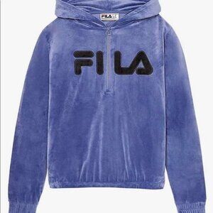 Fila Women Velour Quarter Zip Hoodie Top Sweatshirt