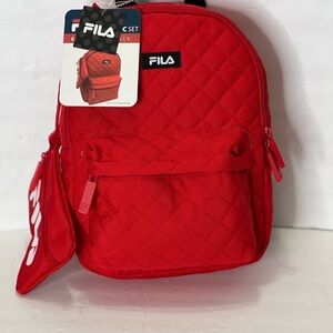 Fila Womens Backpack Red Quilt With Pouch Medium Eileen Backpack New