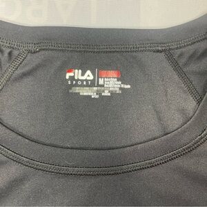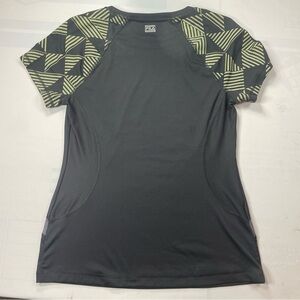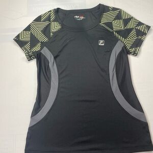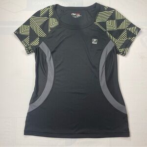 Elevate your activewear with the Fila Women's Top. Featuring a stylish black base with green geometric accents, this top combines fashion and function. Perfect for workouts or casual outings.