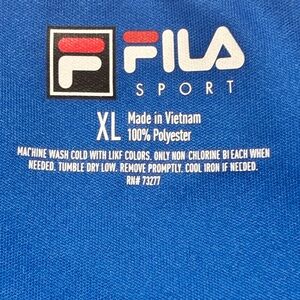 Stylish Fila tee in blue with vibrant pink and yellow details. Ideal for casual wear.