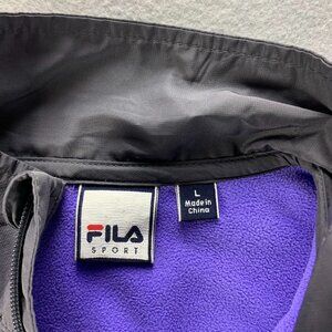 Fila Womens Fleece Jacket Large Purple Gray Full Zip Pockets Polyester