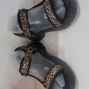 Ladies Fila strappy sandals with a hook and loop closure. The sandals have an animal print. They are in great condition. Please see all pictures.