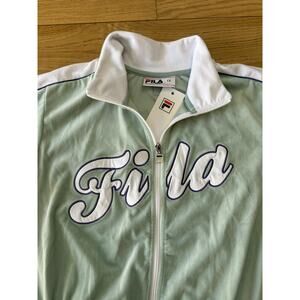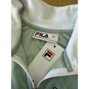 Fila Women's Plus Size Valery Logo Zip Front Velour Track Jacket in Mint Green/White