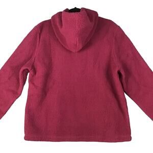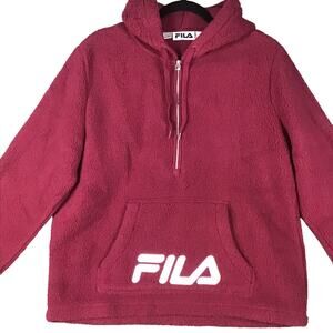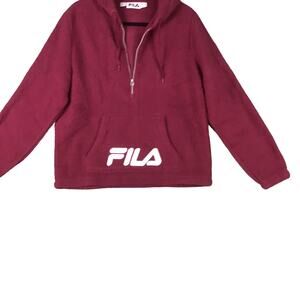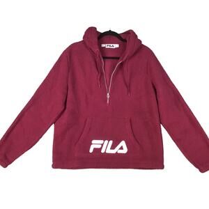 Fila Women’s Red Sherpa Hoodie Pullover Size Medium Logo Half Zip Cozy Warm