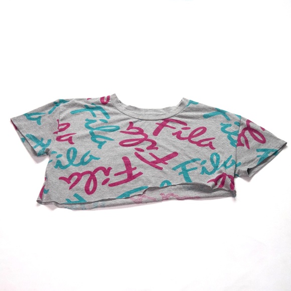 Fila Womens Size Small Big Girls Large Grey Multicolored Crop Shirt