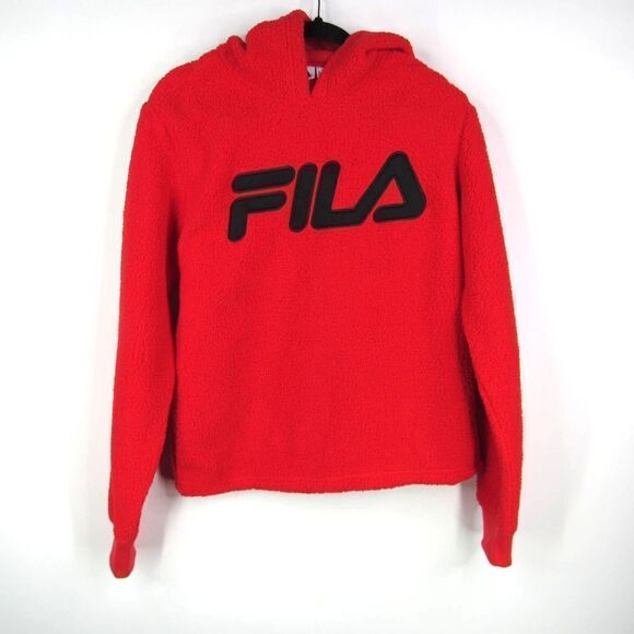 Fila Women's Teddy Faux Sherpa Pull Over Hoodie in Red SZ M