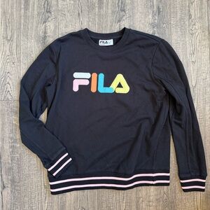 Fila Womens Colorful Terry Crewneck Sweatshirt-Black Candy Pink stripe. Size Large. Perfect- like new condition. Oversized fit.