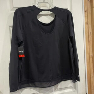 Fila Women’s XL Black Long Sleeve Wicking Workout Shirt Mesh on Bottom NWT